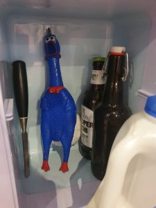 In terms of the purpose of this article, “how to organise a rubber chicken shoot”, this is where, on reflection, we drifted off course, fell fowl of our better judgement, so to speak. The chickens understandably began  to develop personalities and became socialised within the gym environment. They have been taken on weekend trips, some of them even have names. we have adjusted the pitch of the squawk in a couple of them using a piece of grass. They help us communicate effectively whuilst face masks are still recommended. One of them has a fairy outfit made and ended up on the christmas tree.